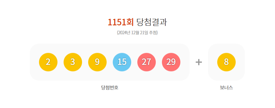 2024년 12월 21일 로또 1151회 당첨번호가 발표되었습니다.