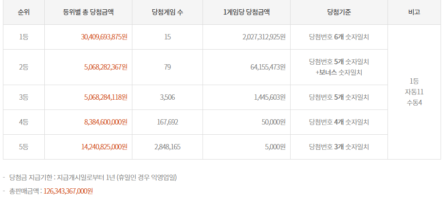 3등 당첨자는 3,506명으로 1인당 약 144만원을 받을 수 있겠네영