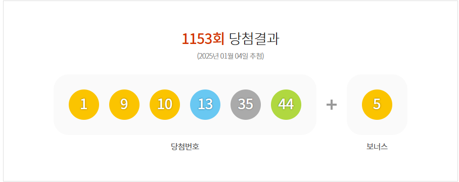 2025년 01월 04일 로또 1153회 당첨번호가 발표되었습니다.